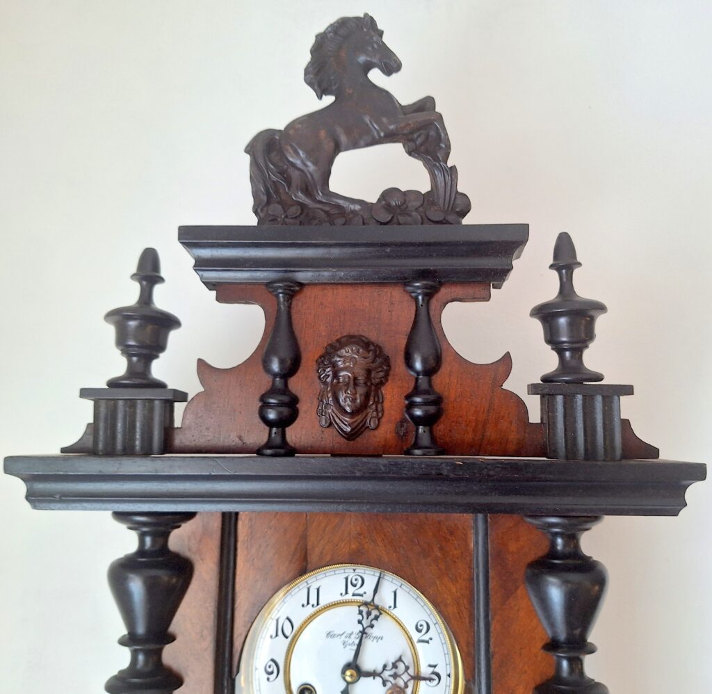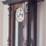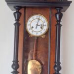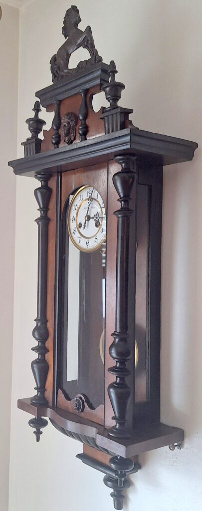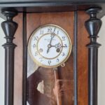 Zegar nie jest nowy i może posiadać drobne niedoskonałości (zarysowania, wgniecenia, drobne ubytki forniru, przebarwienia). Cena adekwatna do stanu zegara.