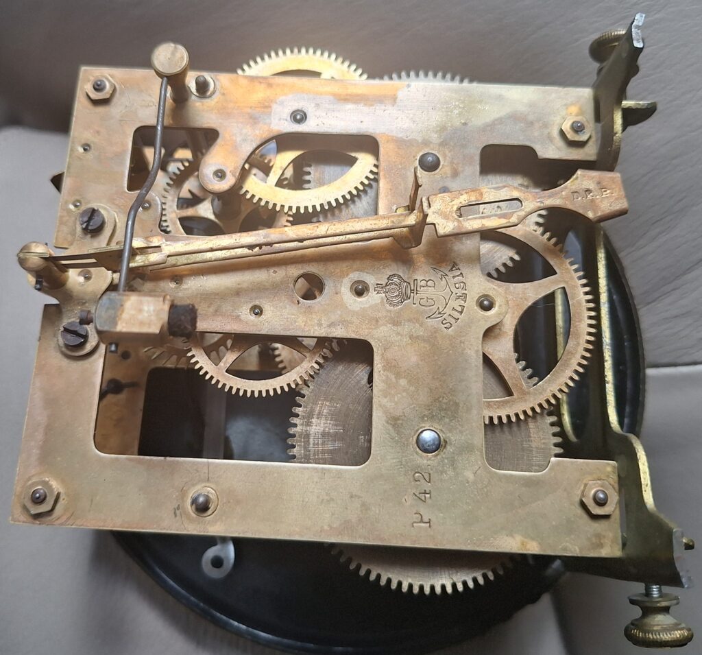 Mechanizm wyczyszczony (usunięty stary smar i naoliwiony odnowa), sprawny. Zegar był kontrolnie obserwowany przez dłuższy czas pod względem funkcjonowania, wszystko działa ok.