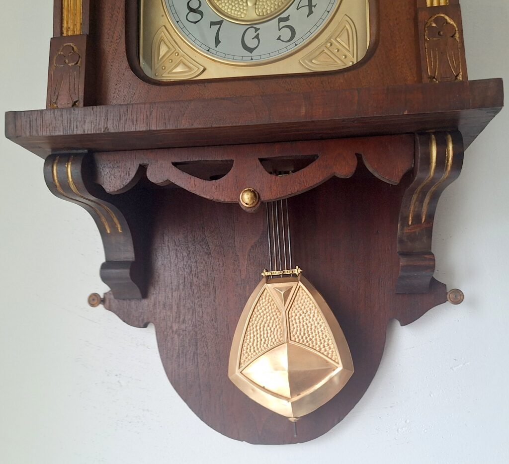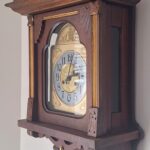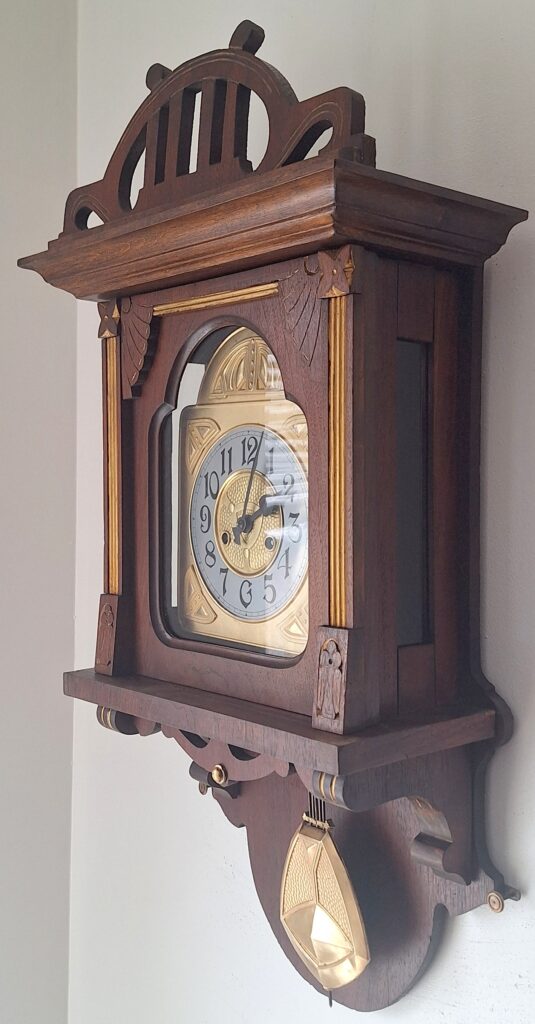 Rzeczywisty stan zegara przedstawiają zdjęcia. Skrzynia wykończona w orzechu kolor obrazują zdjęcia i film.